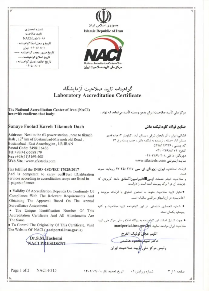 İran çelik endüstrisinde öncü bir marka olarak, hammadde tedarik seviyesinden müşterilerle iletişime kadar Foolad Kaveh Tikmeh-Dash, “kalite” kelimesini şirketin ana ve temel direği olarak sürekli olarak yeniden tanımlamaktan onur duymaktadır. Bu, marka mükemmelliğine yol açan politikadır.
